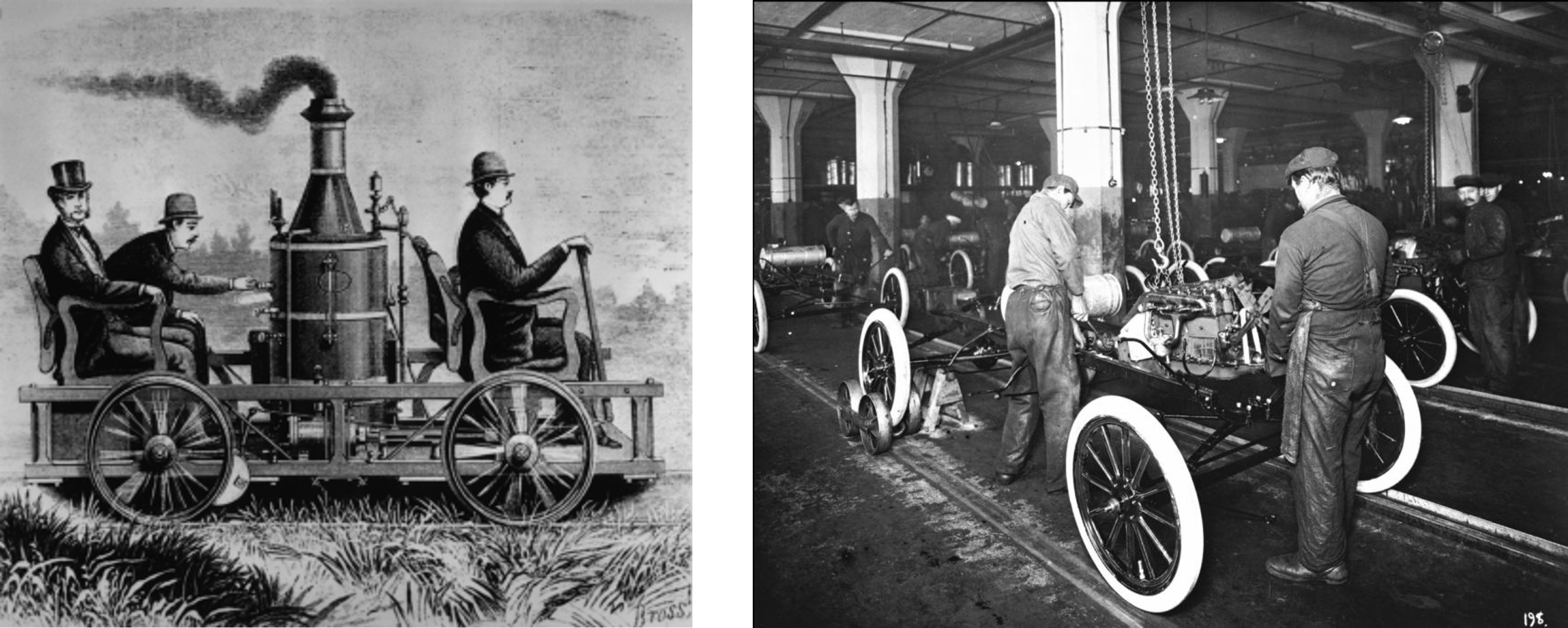 Before mass production, cars were built almost like prototypes. Once assembly lines were introduced: